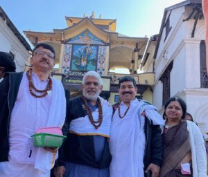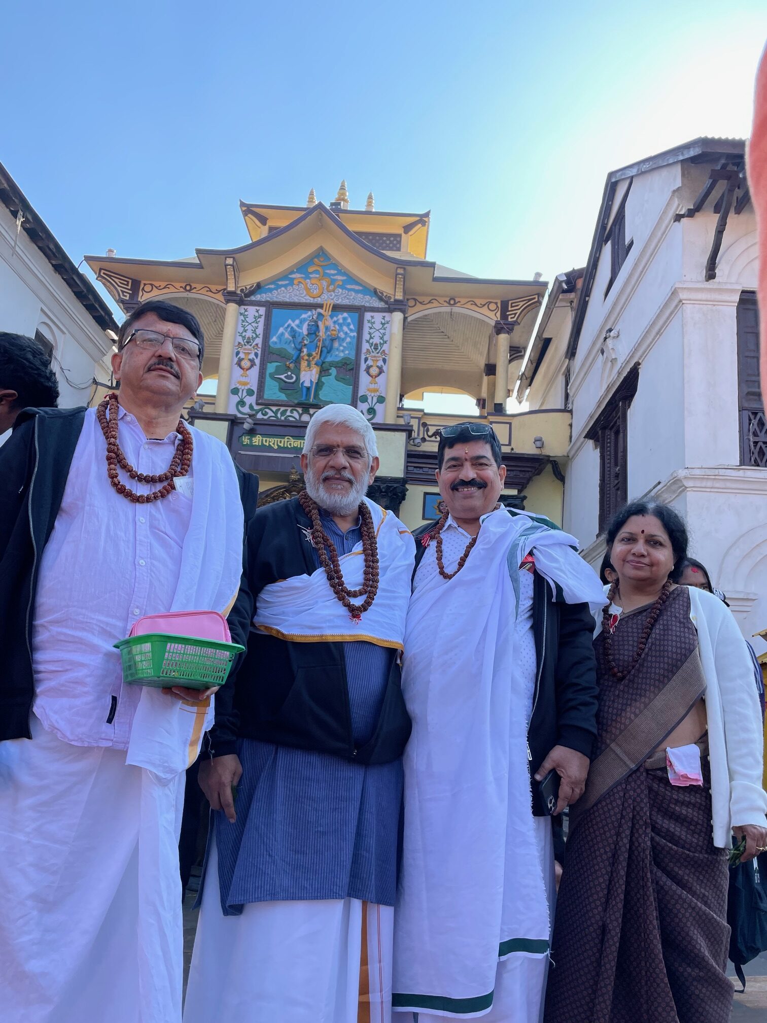 ಮರುದಿನ ಬೆಳಿಗ್ಗೆ, ಭಗವಾನ್ ಪಶುಪತಿನಾಥ ದೇವಸ್ಥಾನಕ್ಕೆ ಭೇಟಿ. ನಮ್ಮ ಅದೃಷ್ಟವಶಾತ್, ಅಲ್ಲಿಯ ಪ್ರಧಾನ ಅರ್ಚಕರಲ್ಲಿ ಒಬ್ಬರು ಪರಿಚಯದವರಾಗಿದ್ದರಿಂದ, ಮನಃಪೂರ್ವಕ ದರ್ಶನ ಹಾಗೂ ಪೂಜೆಗೆ ಅವಕಾಶ ಸಿಕ್ಕಿತು. ಅಲ್ಲಿಯ ವಿಶೇಷ ಪದ್ದತಿಯ ಪ್ರಕಾರ, ಅರ್ಚಕರು ನಮ್ಮೆಲ್ಲರಿಗೂ “ರುದ್ರಾಕ್ಷಿ” ಮಾಲೆಯನ್ನು ನಮ್ಮ ಕೊರಳಿಗೆ ಹಾಕಿ ಆಶೀರ್ವದಿಸಿದರು! ದೇವಸ್ಥಾನದ ಆವರಣದಲ್ಲಿ, ಆಕಸ್ಮಿಕವಾಗಿ, ದೇವರ ದರ್ಶನಕ್ಕೆ ಬಂದ ಕೊಪ್ಪದ ಹತ್ತಿರದ ಗೌರಿಗದ್ದೆಯ “ಅವಧೂತ ವಿನಯ ಗುರುಜಿ ” ಅವರ ಭೇಟಿಯೂ ಆಯಿತು!