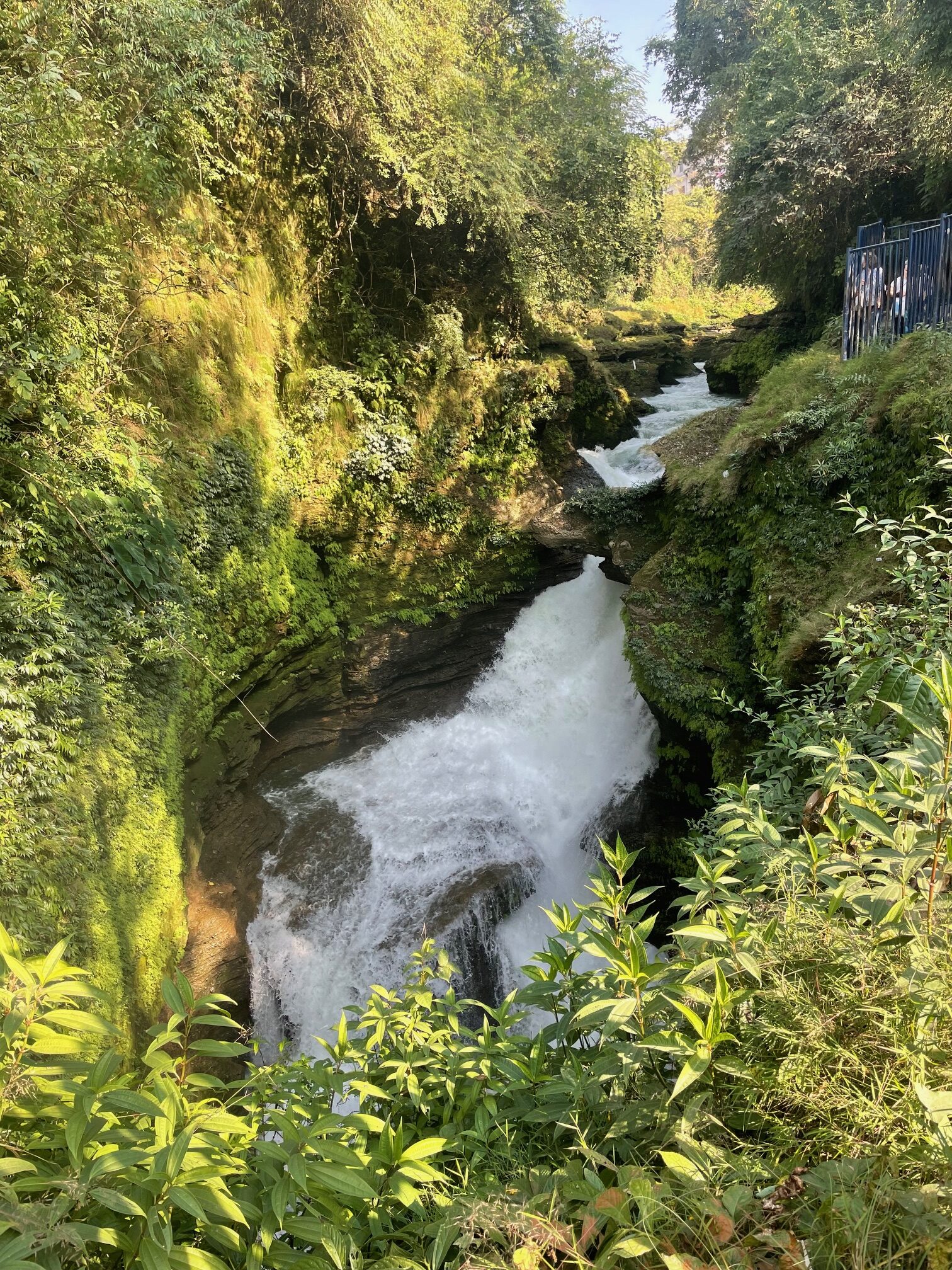 ಬೆಳಿಗ್ಗೆ, ನಮ್ಮ ಪ್ರವಾಸದ ವೇಳಾಪಟ್ಟಿಯ ಪ್ರಕಾರ, “ದೇವಿ ಜಲಪಾತ” ನೋಡಲು ಹೋದ್ವಿ. ಸುಂದರ, ಆದರೆ ಉದ್ದದಲ್ಲಿ ಸಣ್ಣ ಜಲಪಾತ, ಸ್ವಲ್ಪವೇ ದೂರ ಕಾಣಿಸಿಗೊಂಡು ಒಮ್ಮೆಲೇ ಭೂಮಿಯಲ್ಲಿ ಲೀನ! ಮುಂದೆ ಎಲ್ಲಿ ಹೋಗುತ್ತೆ ಅನ್ನುವದು ಕಾಣಲ್ಲ. ಆ ಜಲಪಾತದ ನೀರು ಭೂಮಿಯಲ್ಲಿ ಸುರಂಗ ಮಾರ್ಗವಾಗಿ ಹೋಗಿ “ಸೇತಿ ನದಿ” ಗೆ ಸೇರುತ್ತದೆ ಅನ್ನುವ ಉಲ್ಲೇಖವಿದೆ.