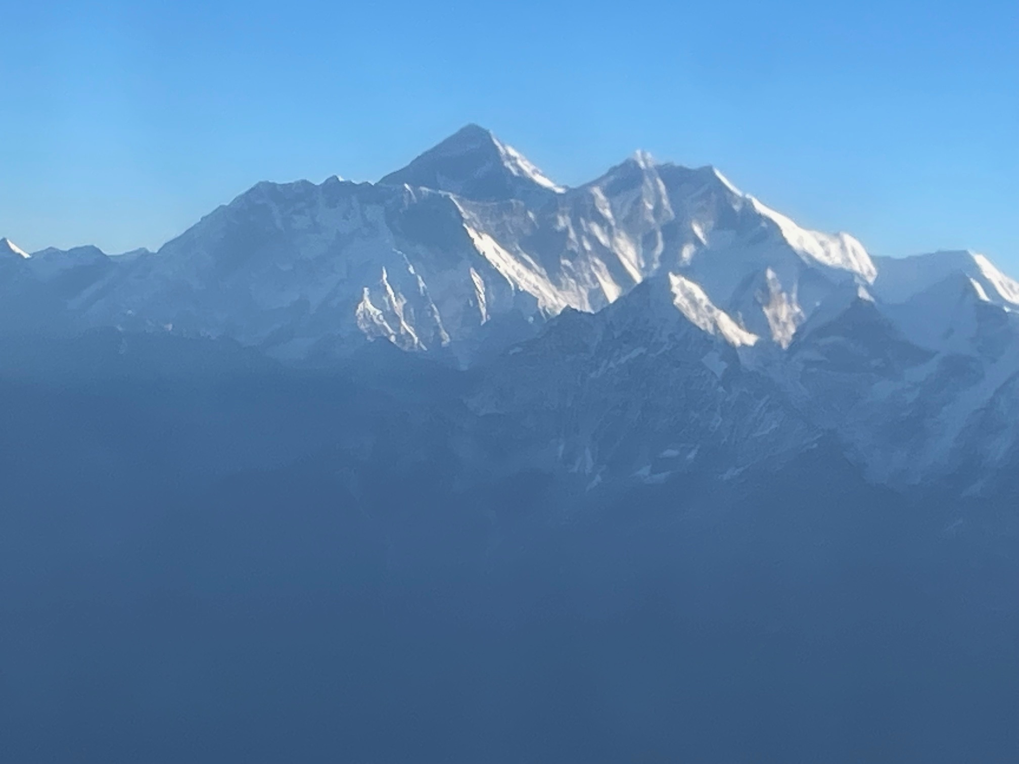 ಮೊದಲೇ ನಿರ್ಧರಿಸಿದಂತೆ, ಬೆಳಿಗ್ಗೆ 5 ಗಂಟೆಗೆ ಕಾಠಮಂಡು ವಿಮಾನ ನಿಲ್ದಾಣಕ್ಕೆ “ಎವರೆಸ್ಟ್ ಪರ್ವತ ದರ್ಶನ” ದ ವಿಮಾನವನ್ನು ಏರಲು ಹೊರಟೆವು. ಹಿಮಾಲಯದ ಬೇರೆ ಬೇರೆ ಪರ್ವತ ಶ್ರೇಣಿಗಳನ್ನು ನೀವು ಈ ಒಂದು ತಾಸಿನ ವಿಮಾನ ಪ್ರಯಾಣದಲ್ಲಿ ನೋಡಿ ಆನಂದಿಸಬಹುದು. ವಿಮಾನದ ಮಾರ್ಗದರ್ಶಕ ಯಾ ಗಗನಸಖಿಯರು, ಪ್ರತಿಯೊಂದು ಪರ್ವತ ಶ್ರೇಣಿಯನ್ನು ದಾಟುವಾಗ ನಿಮಗೆ ಚೆನ್ನಾಗಿ ವಿವರಿಸುತ್ತಾರೆ. ಜಗತ್ತಿನ ಅತಿ ಎತ್ತರದ ಹಾಗೂ ಶ್ರೇಷ್ಟವಾದ, ಎವರೆಸ್ಟ್ ಪರ್ವತವನ್ನು (8849 ಮೀಟರು ಎತ್ತರ) ಹತ್ತಿರದಿಂದ ಕಣ್ತುಂಬಾ ನೋಡಿ ಆನಂದಿಸಿದೆವು.